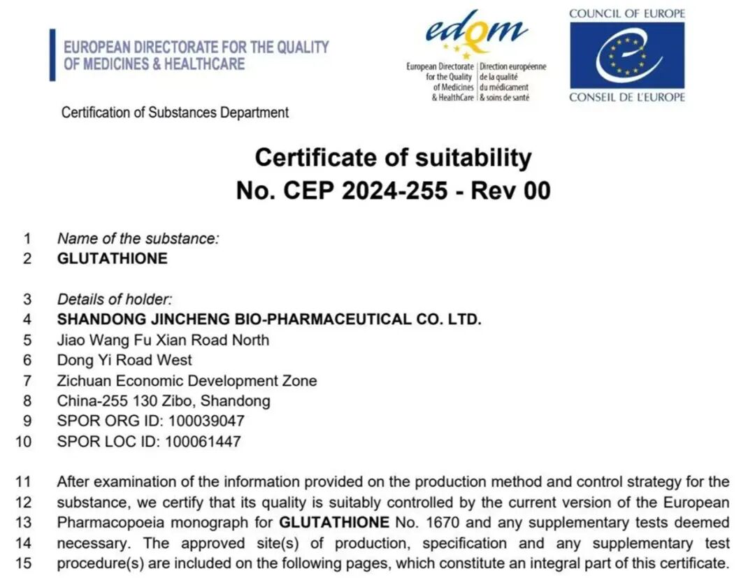 金城生物谷胱甘肽原料藥獲歐洲CEP認證發表時間:2025-11-20