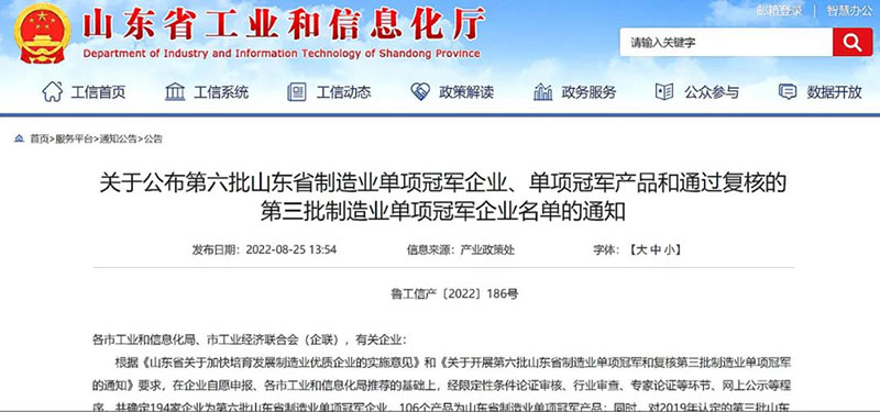 金城醫藥DCC產品被認定為山東省制造業單項冠軍產品發表時間:2022-08-31