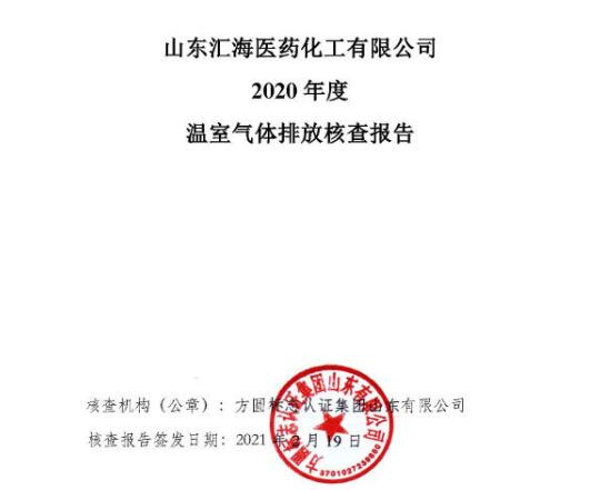 山東匯海醫藥化工有限公司碳排放核查報告發表時間:2021-04-06