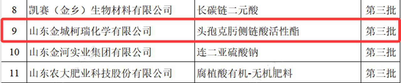 ? ? ??日前,工業和信息化部發布了第九批制造業單項冠軍企業和復核通過第三批、第六批制造業單項冠軍企業名單,金城醫藥集團子公司山東金城生物藥業有限公司(簡稱“金城生物”)被認定為第九批制造業單項冠軍企業,子公司山東金城柯瑞化學有限公司通過第三批制造業單項冠軍企業復核。截至目前,金城醫藥已獲批3個國家級制造業單項冠軍企業和2個省級制造業單項冠軍企業。